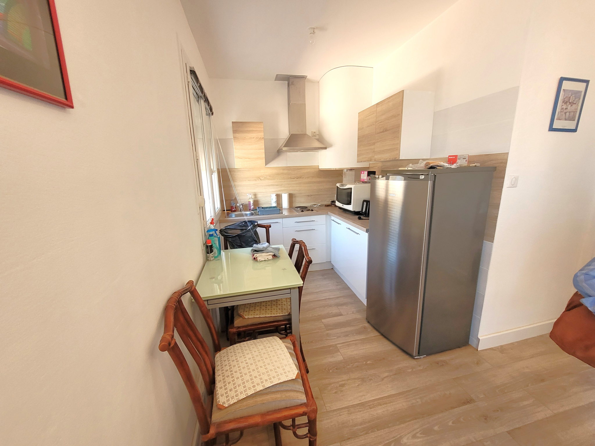 Composition : une entrée sur séjour, un coin cuisine, un dégagement desservant 2 chambres et une salle d'eau avec wc.